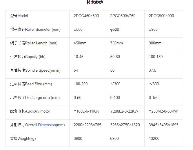 雙齒輥破碎機(jī)技術(shù)參數(shù):